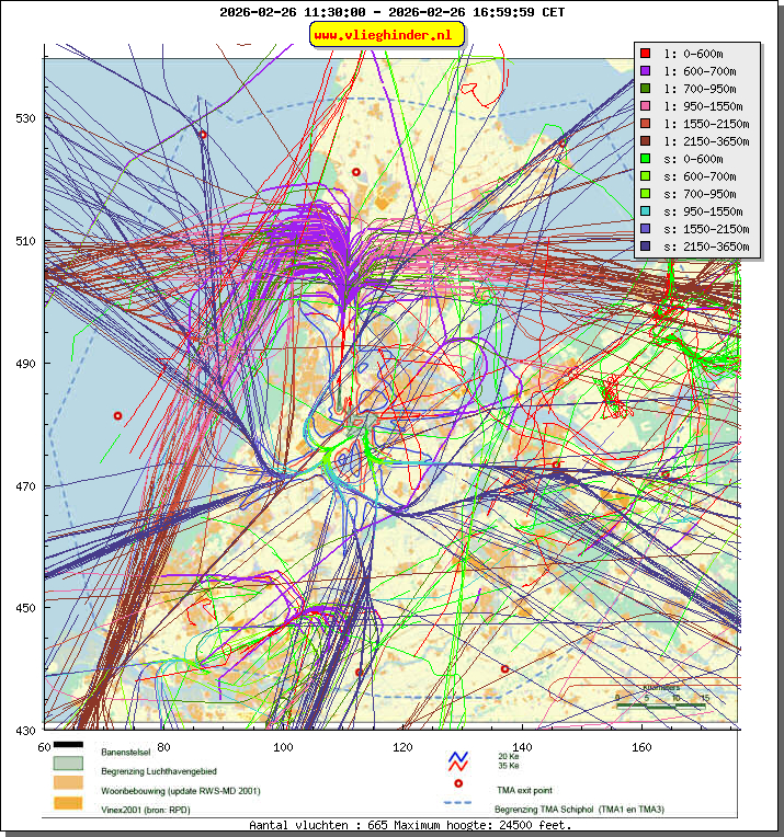 Landend verkeer wordt weergegeven in