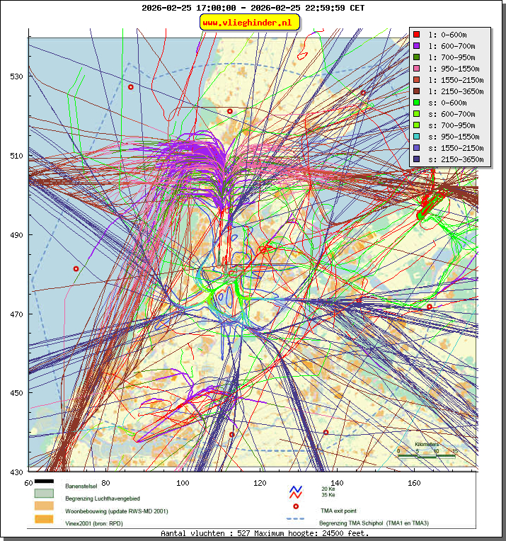 Landend verkeer wordt weergegeven in oranje.
