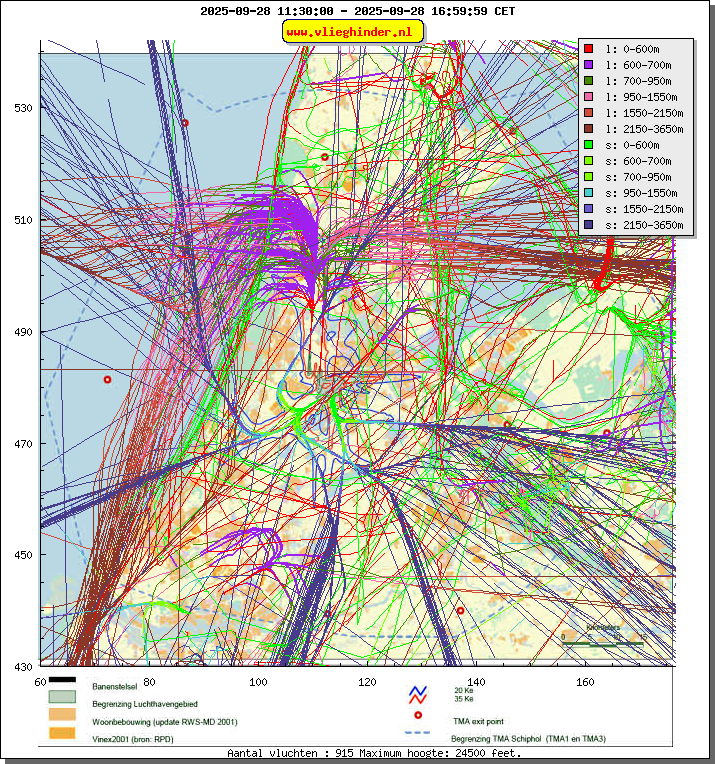 Landend verkeer wordt weergegeven in