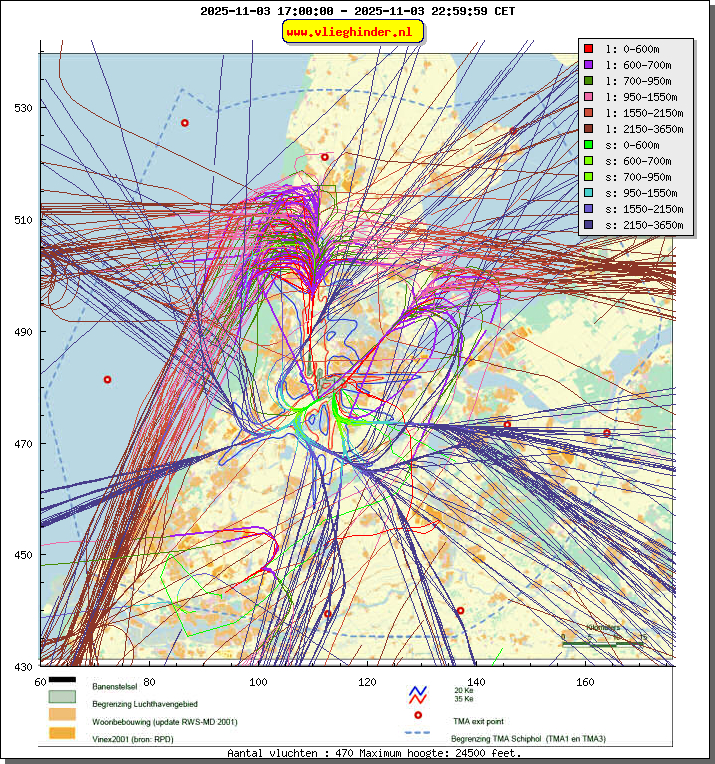 Landend verkeer wordt weergegeven in