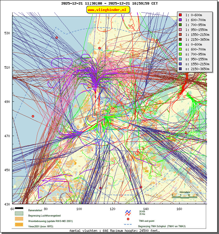 Landend verkeer wordt weergegeven in