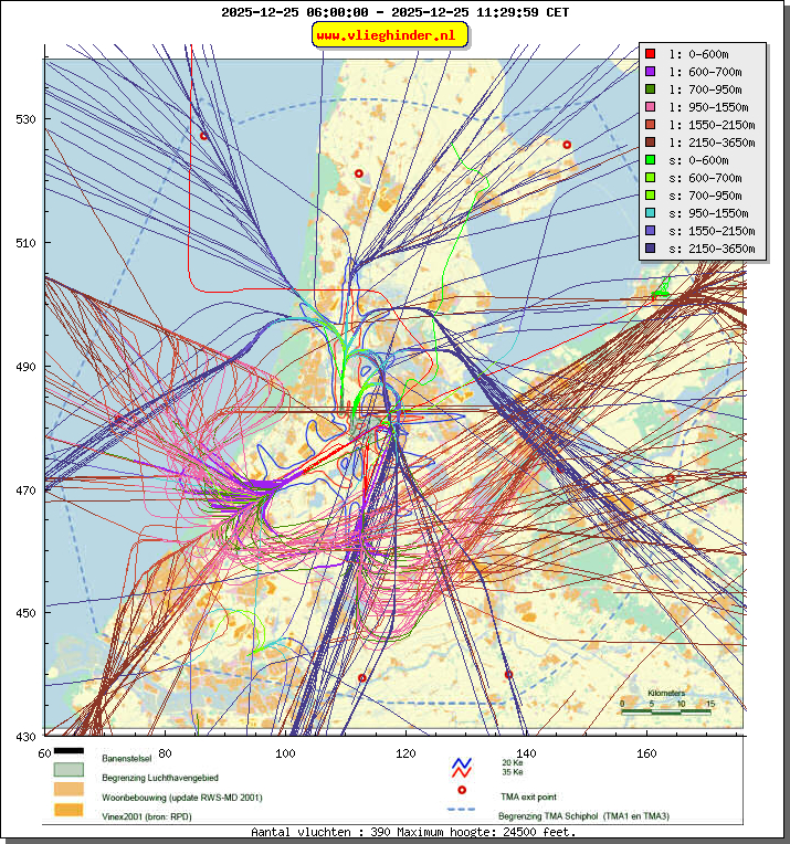Landend verkeer wordt weergegeven in