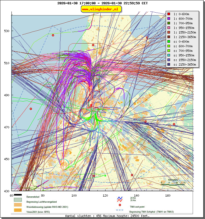 Landend verkeer wordt weergegeven in