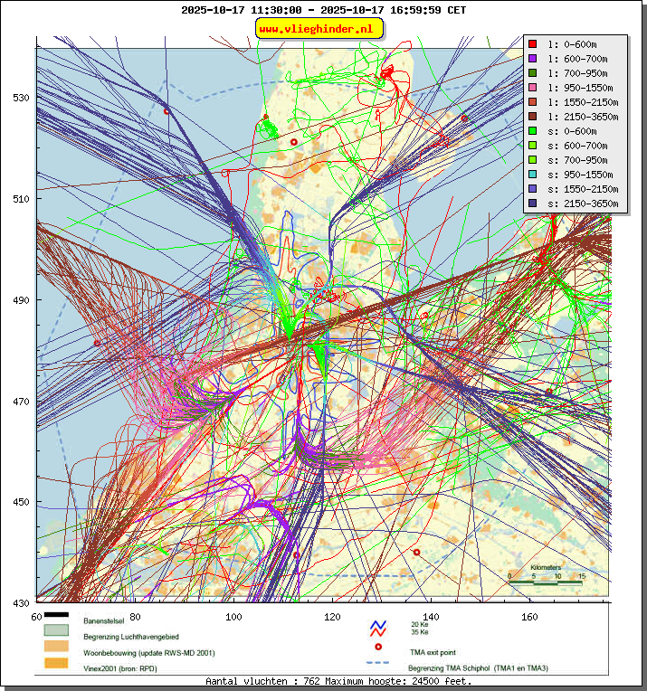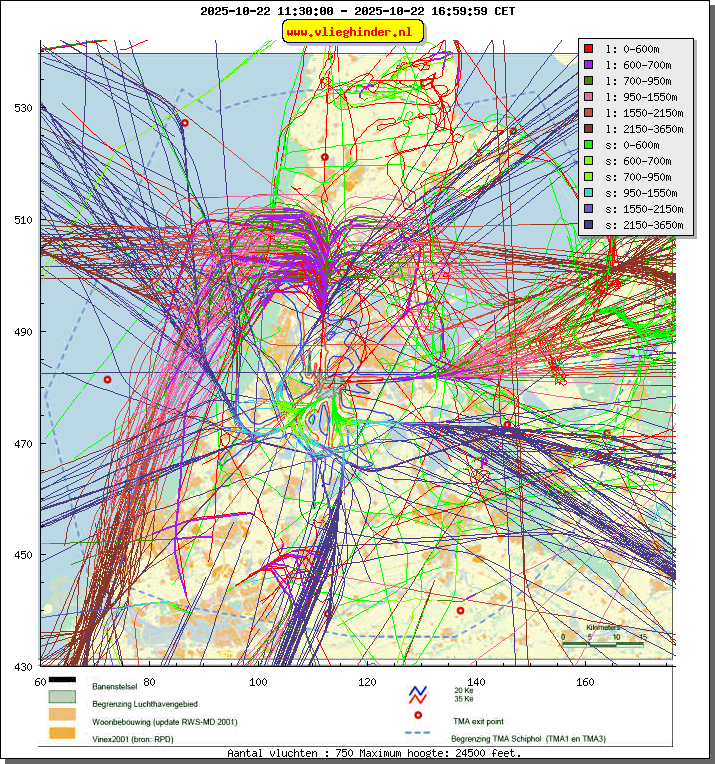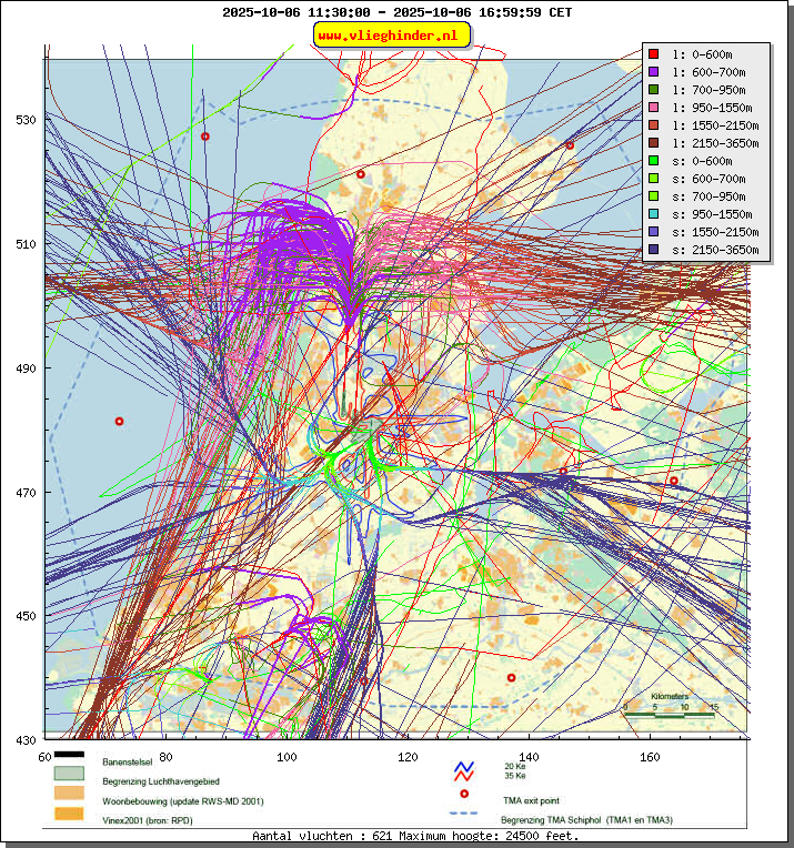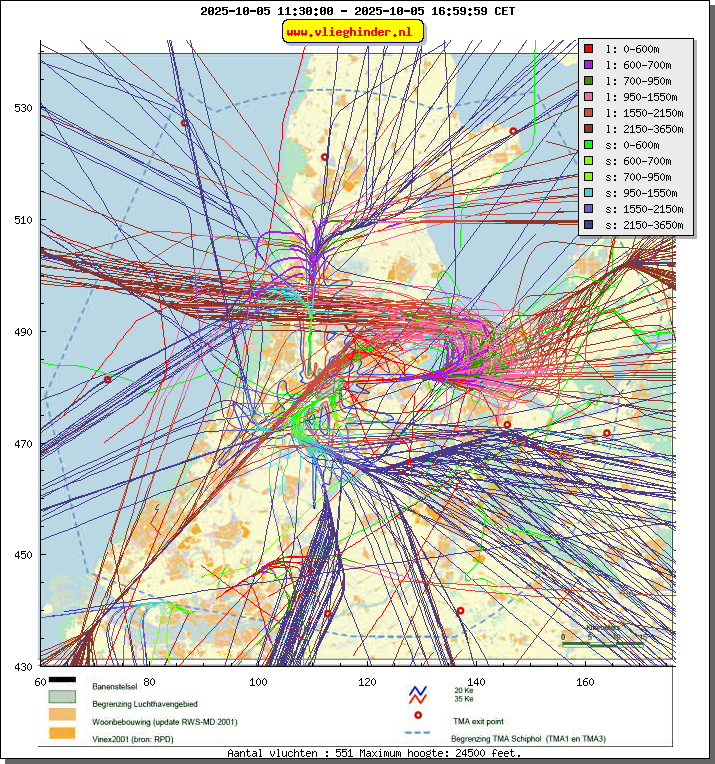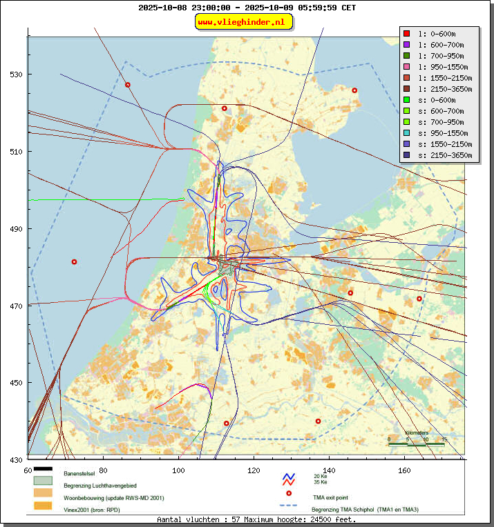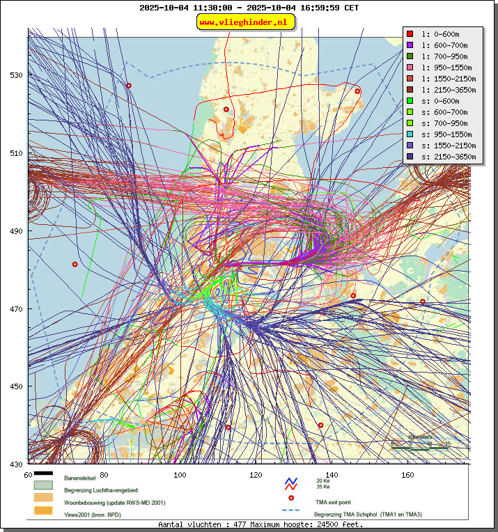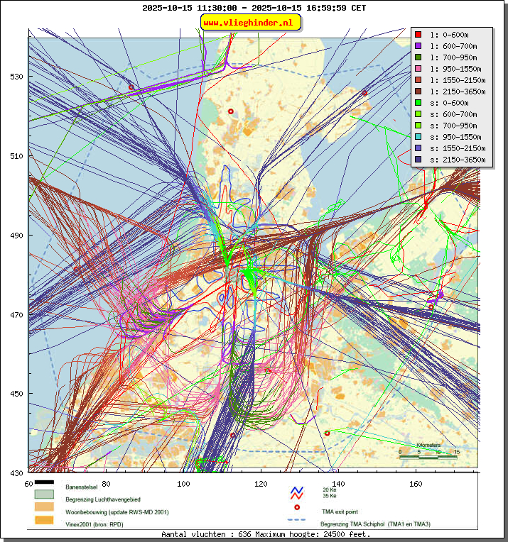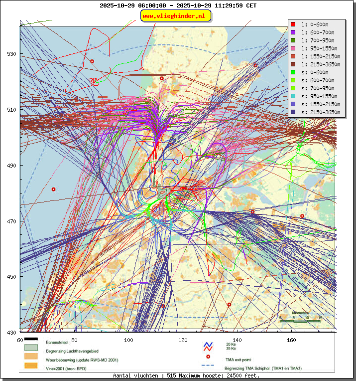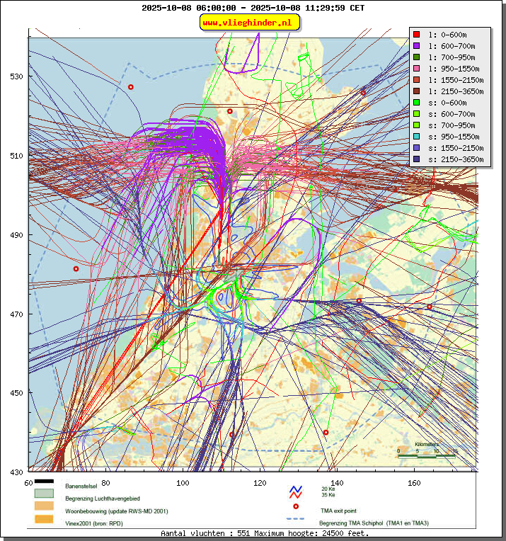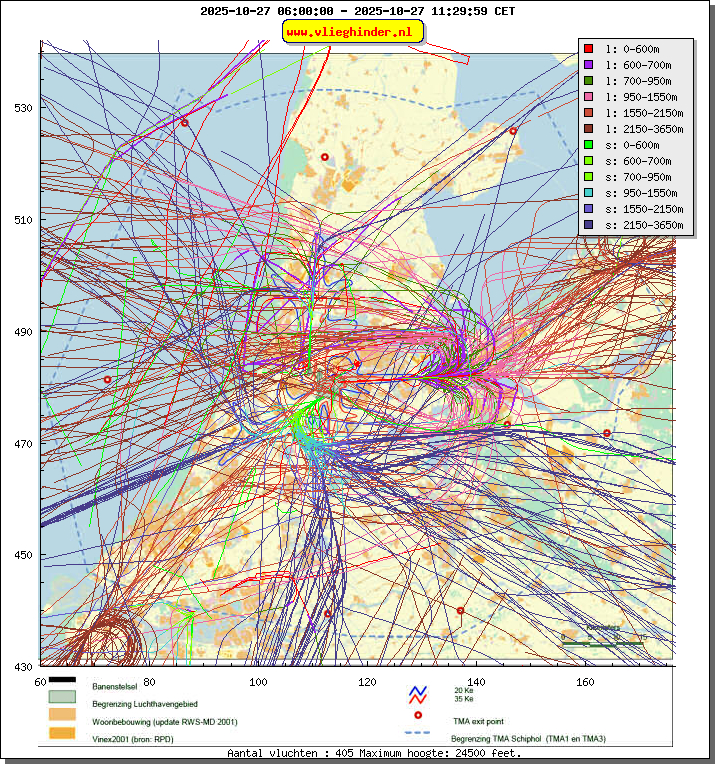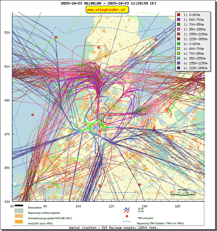 Landend verkeer wordt weergegeven in oranje.